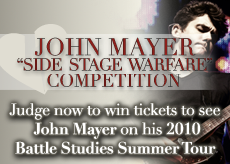 Every young artist dreams about making it big and being able to play with their idols in front of thousands of screaming fans. Well, with your help a select few will have the opportunity to share the spotlight with John Mayer on his 2010 Battle Studies Summer Tour! That’s right, YOU the FAN have the power to pick the best artist in the John Mayer Side Stage Warfare Competition Channels to give them the break of a lifetime! John Mayer will be giving away two (2) tickets to each tour date listed in the competition music channels.
