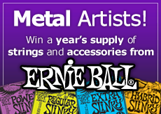 Picture yourself standing on stage in front of a massive audience, shredding the fastest solo you’ve ever played, melting faces with your metal prowess. As you bend the string to hit that final triumphant high-note, the string snaps, ending your glory in one foul swoop. Thankfully, the folks at Ernie Ball are sponsoring the Metal Channel to make sure that, for one winning artist, this nightmare never becomes a reality. At the end of October, Ernie Ball will choose one artist to be the recipient of a years supply of strings. If you think your band is brutal enough to hold rank in the Metal Channel, enter your best song by October 22nd for a shot at this awesome prize. For official rules and competition information, head to the Ernie Ball competition page here. To check out some of the metal artists currently battling it out, listen to the playlist below.